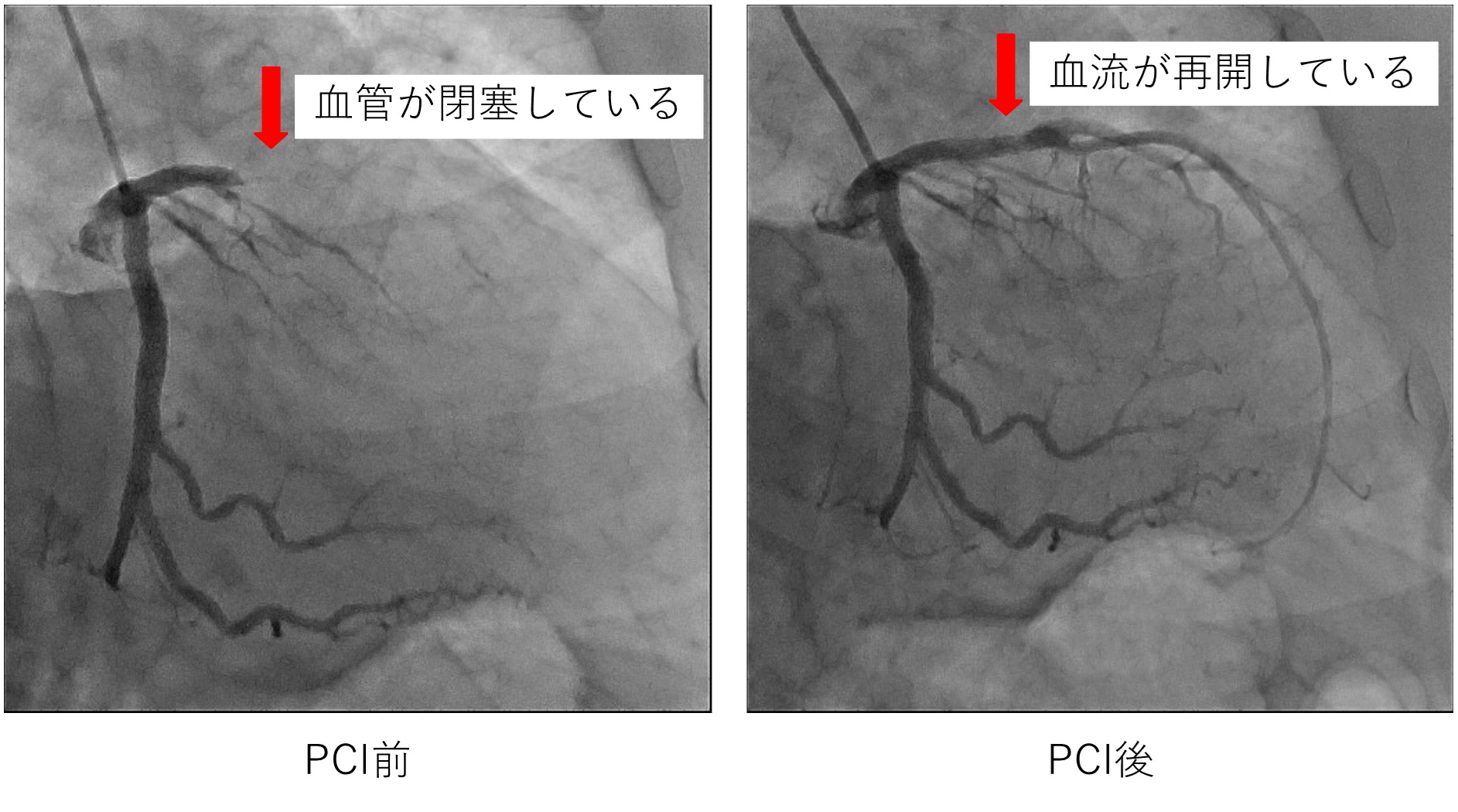 薬をのんでも症状の改善が不十分であったり、心臓の機能が十分でない、虚血範囲や程度が重症な場合など、薬物療法では不十分な場合には、不十分な心筋への血流を回復する血行再建術を行います。主に内科で行うカテーテル治療と、外科で行うバイパス手術があります。